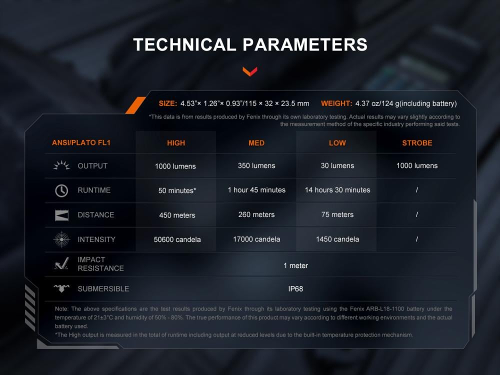 1000 لومينز لمدة 50 دقيقة ولكن لايستمر على 1000 طول المدة ستلاحظ نزول في قوة الكشاف وايضا ستلاحظ ارتفاع في درجة حرارة الكشاف وهذا امر طبيعي وبإذن الله لايوجد خطوره
