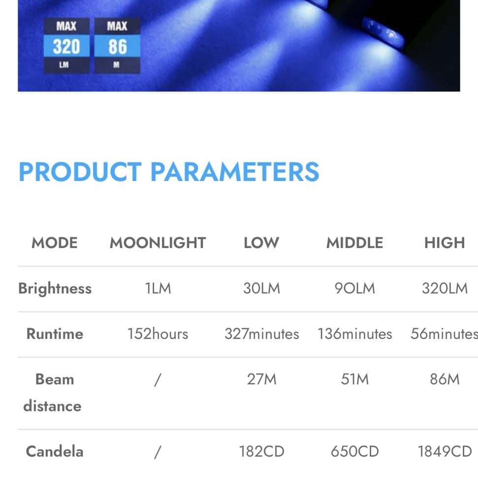 - عدسة انارة بيضاء بقوة 320 لومنز ومسافة 82 متر تقريبا